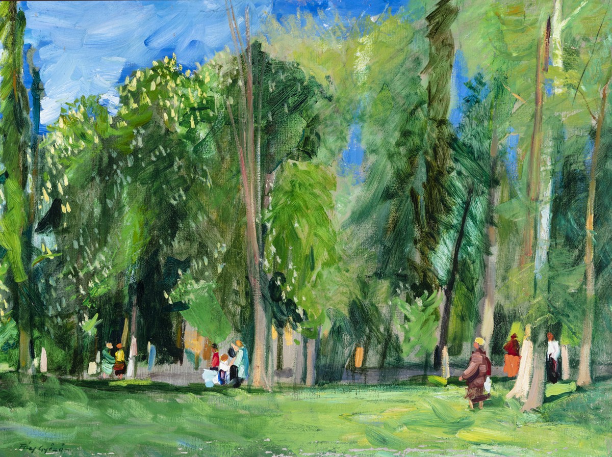 Kikiáltási ár: 360 000 FtKorga György (Budapest, 1935 – Kisoroszi, 2002) Ikebana Olaj, farost 60 × 80 cm Jelezve jobbra lent: Korga