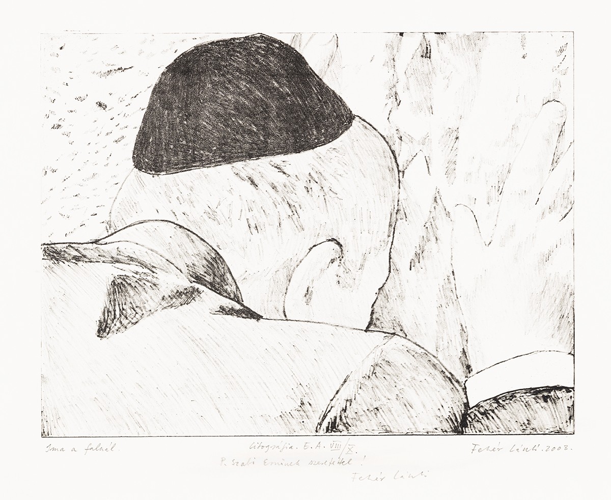 Fehér László (Székesfehérvár, 1953) Ima a falnál, 2003 Litográfia, papír 345 × 460 mm Jelezve balra lent: Ima a falnál Jelezve középen lent: litográfia EA VIII/X. Jelezve jobbra lent: Fehér László 2003