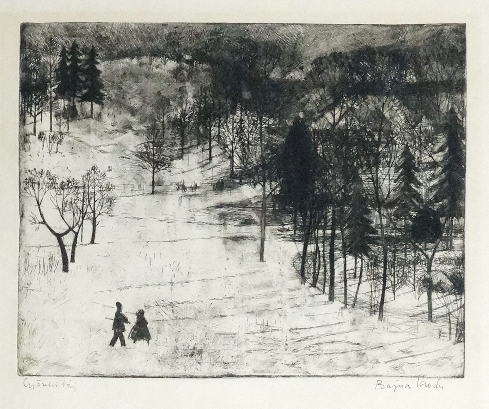 kréta, rézkarc, jjl, keretben, cm