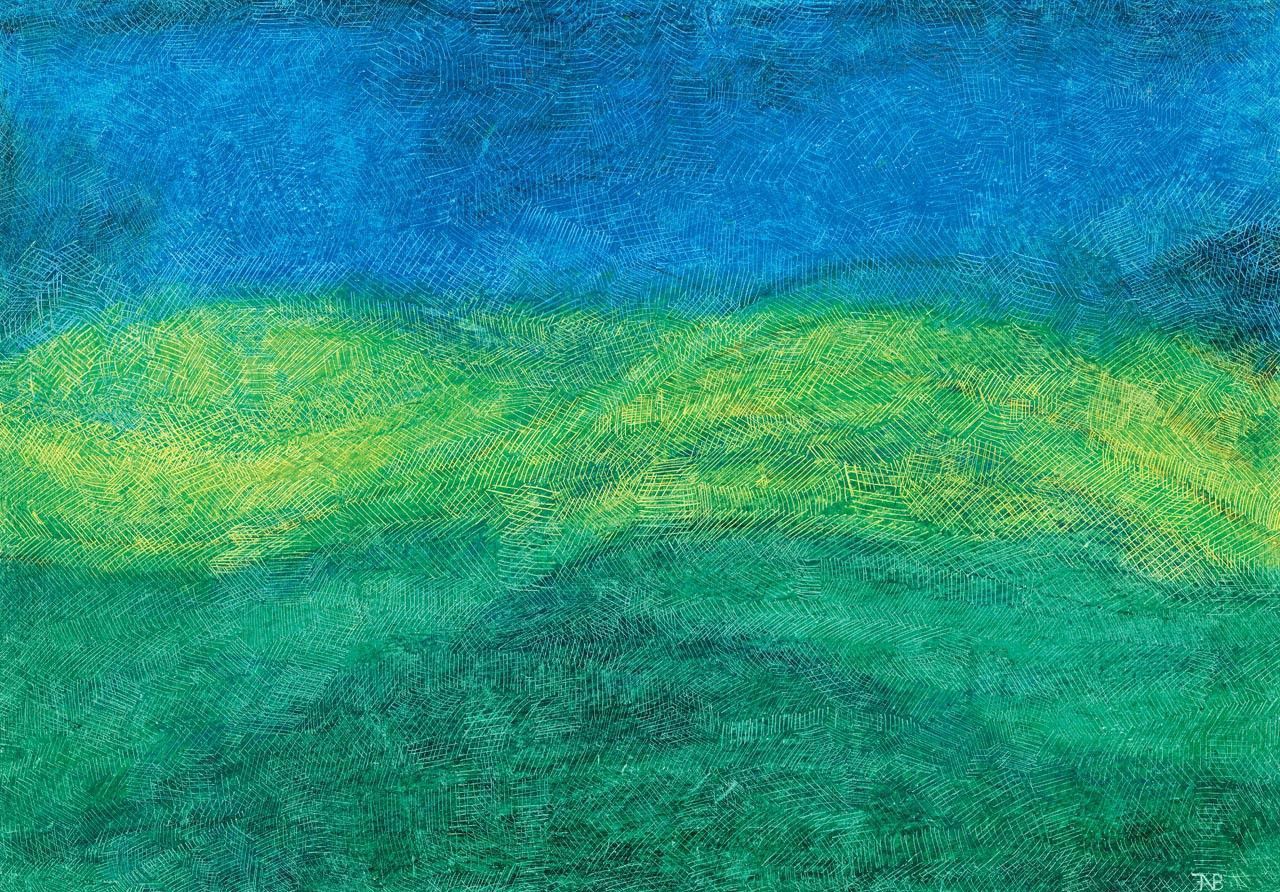 Fekete Nagy Béla: Kék-zöld táj finom struktúrákkal