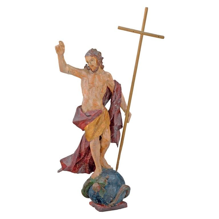 Feltámadt Krisztus: magyar, 19. sz., faragott, festett fa, sérült