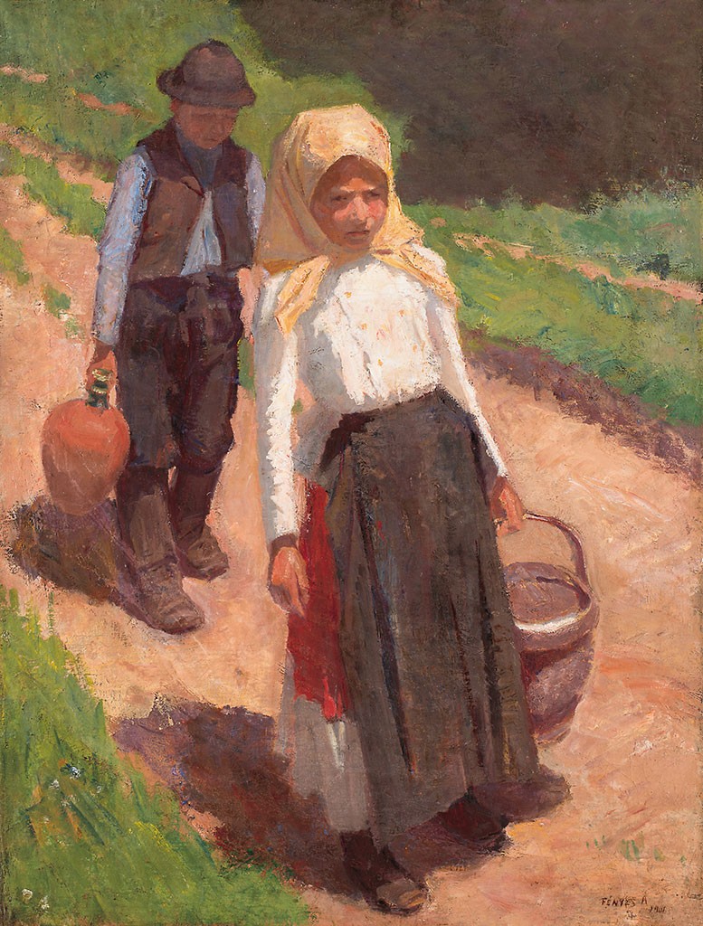Fényes Adolf (1867-1945):Hazatérő testvérek / Vizet hordó leány és fiú, 1903