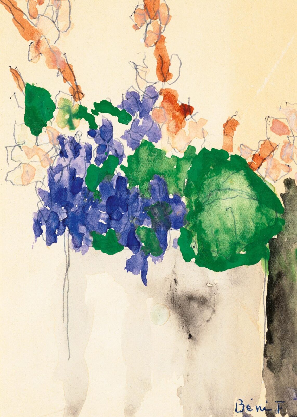 14,5×10, vegyes technika, papír, jelezve jobbra lent: Béni F 1965