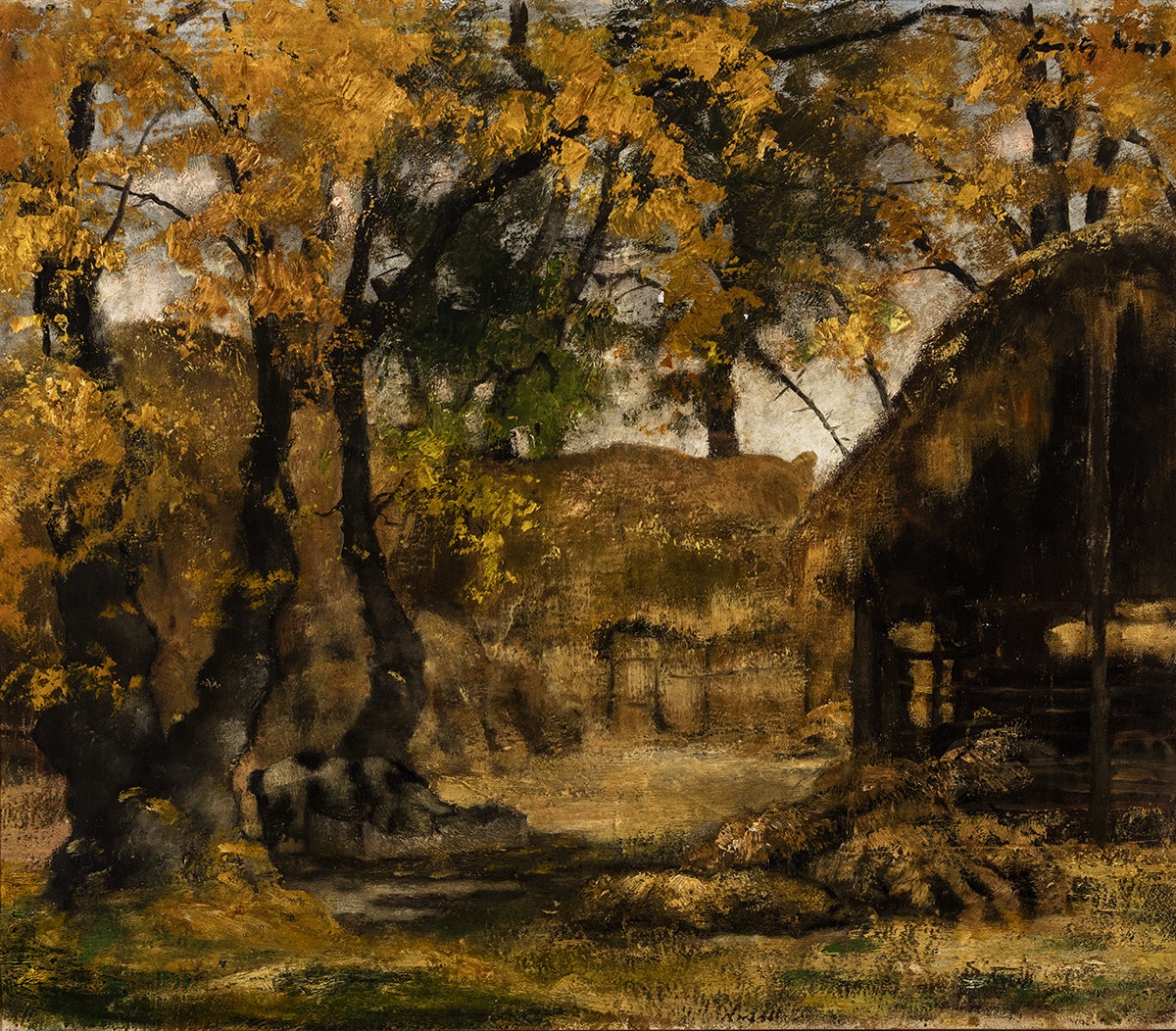 Kikiáltási ár: 48 000 FtKlie Zoltán (Szekszárd, 1897 – Budapest, 1992) Házak Olaj, farost 60 × 80 cm Jelezve jobbra lent: Klie Z.