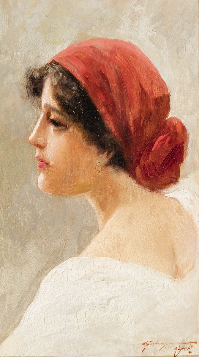 Forlenza, Domenico: Piros kendős lány