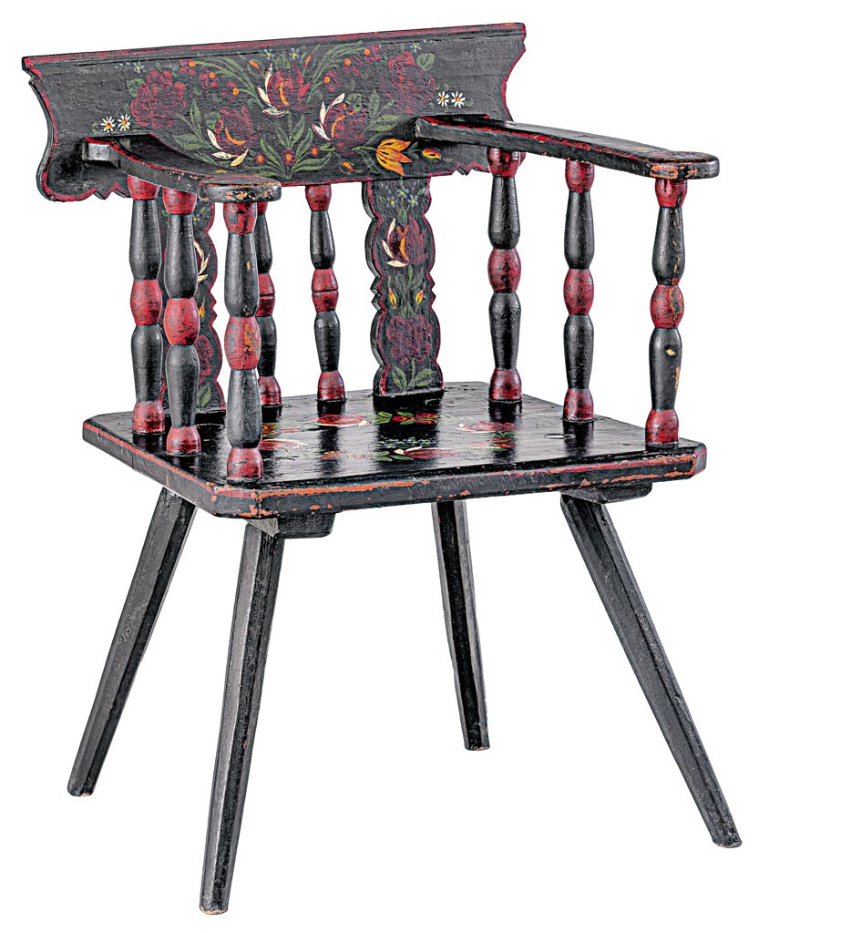 Sárköz, 19. sz. második fele, esztergált és faragott, festett fenyőfa, 97*53,5*67 cm