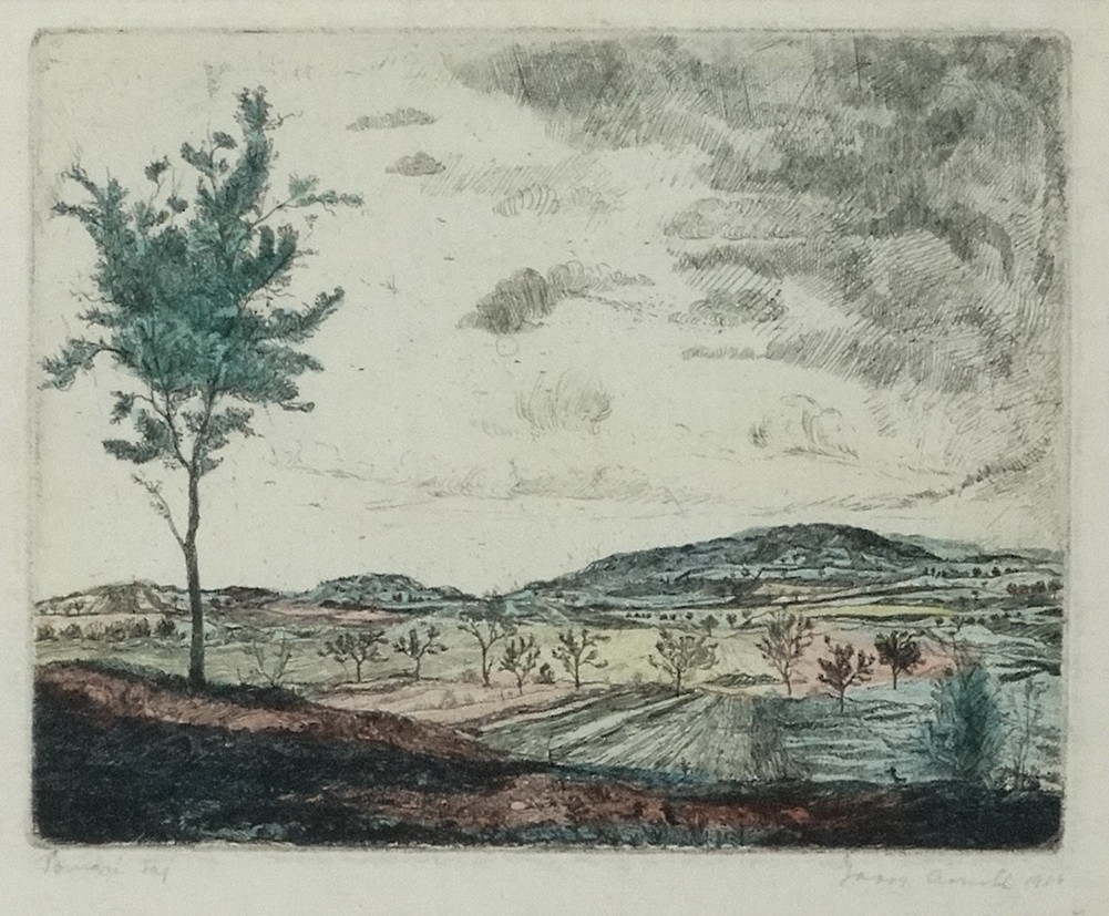 papír, litográfia, szita, jjl, keretben, 100 x 70
