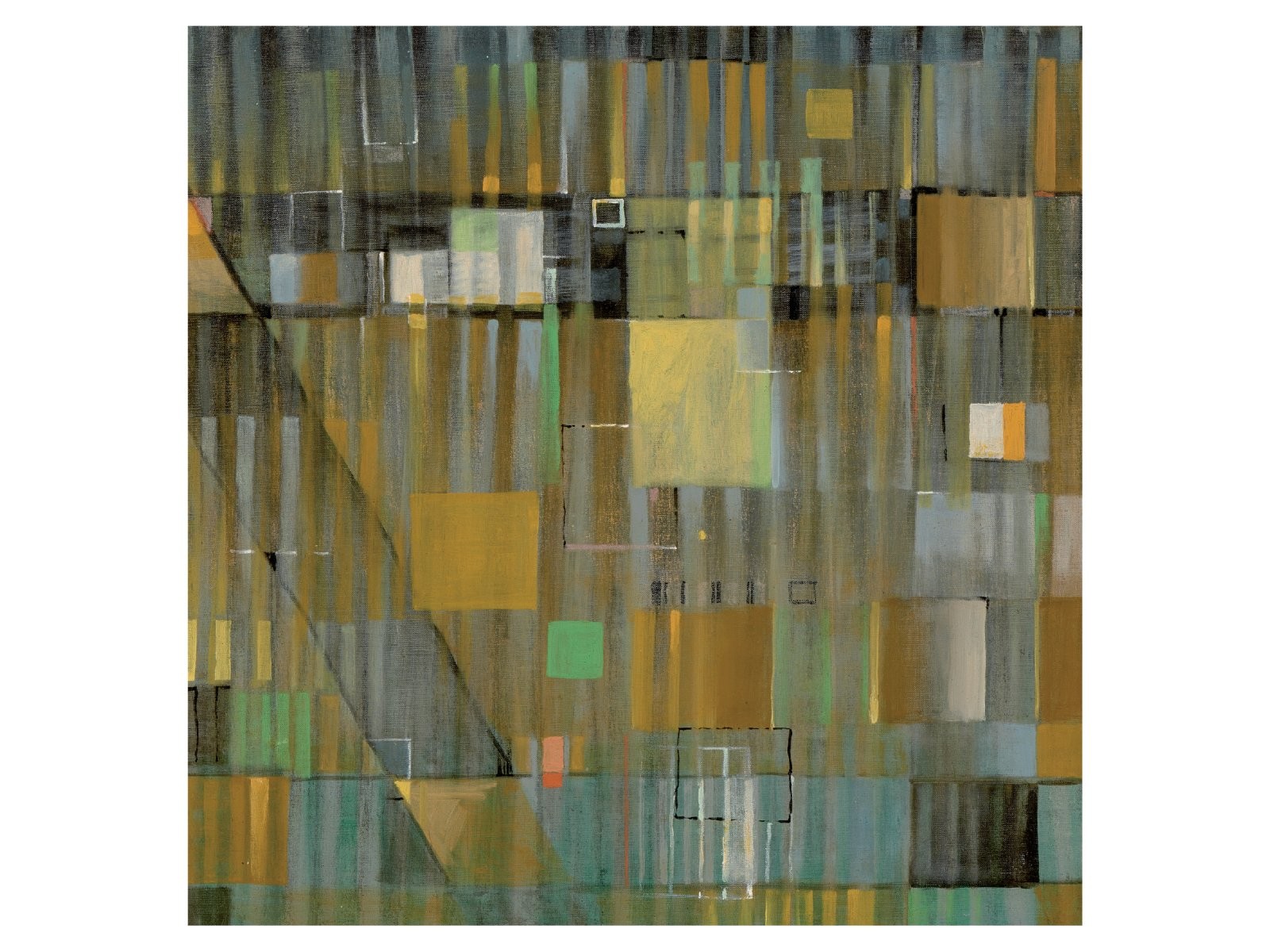 Gyarmathy Tihamér (Pécs, 1915 – Budapest, 2005) Behatoló fények Olaj, vászon 70 X 70 cm Jelezve hátoldalon: Gyarmathy Tihamér 9/88 sk. ajánlás