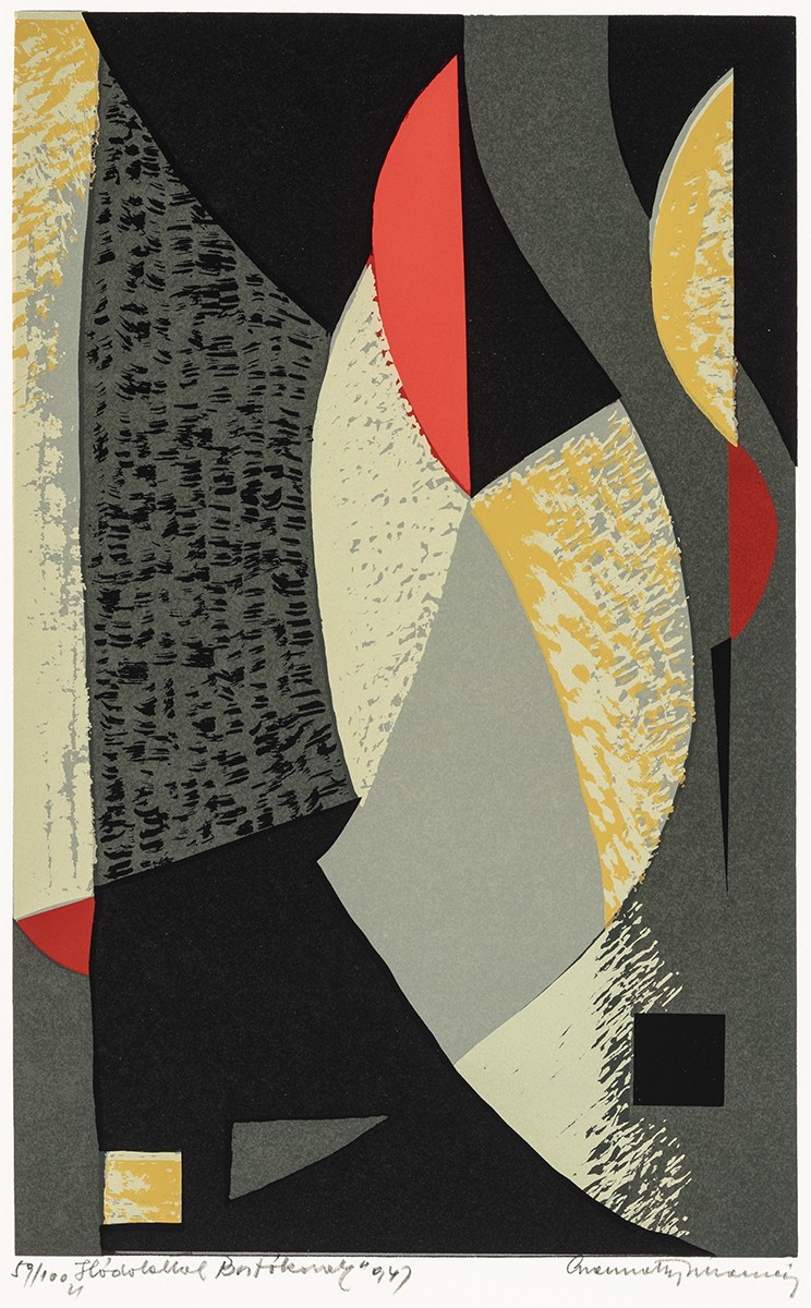 Gyarmathy Tihamér (Pécs, 1915 – Budapest, 2005) Hódolattal Bartóknak, 1979 Szitanyomat, papír 398 × 250 mm Jelezve balra lent: 59/100 Hódolattal Bartóknak ‘947 Jelezve jobbra lent: Gyarmathy Tihamér Lap a Hommage á Bartók című albumból (Emlékalbum, 32 la