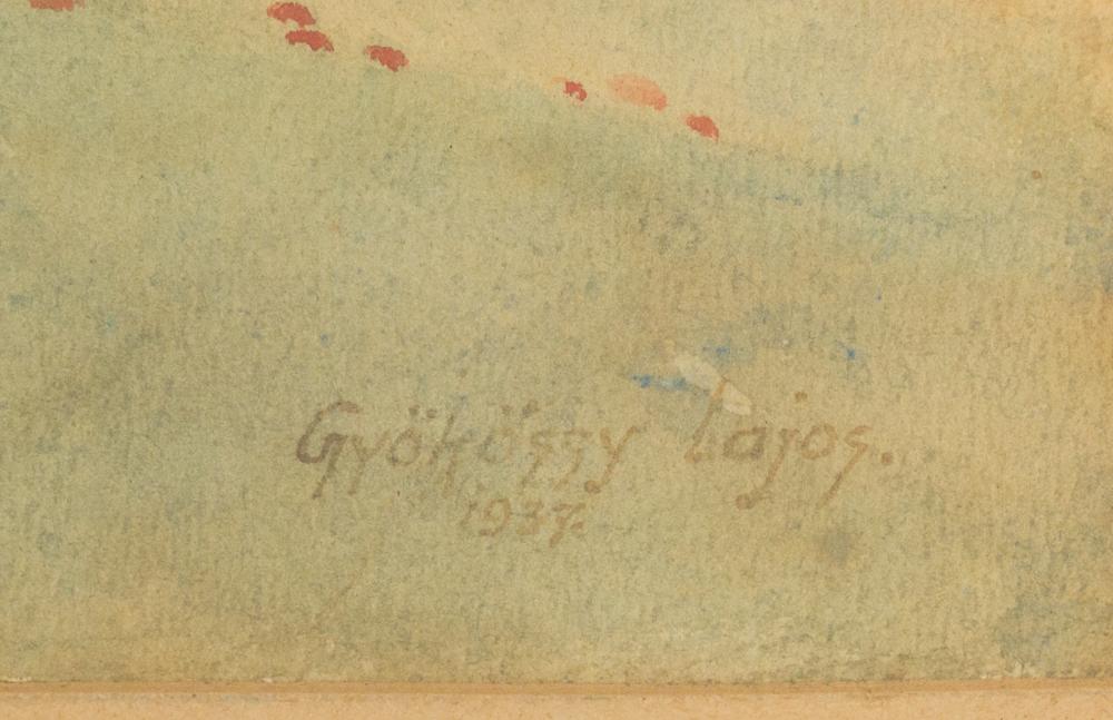 Akvarell, papír, jelzés jobbra lenn, üvegezett hibás keretben 28×44 cm