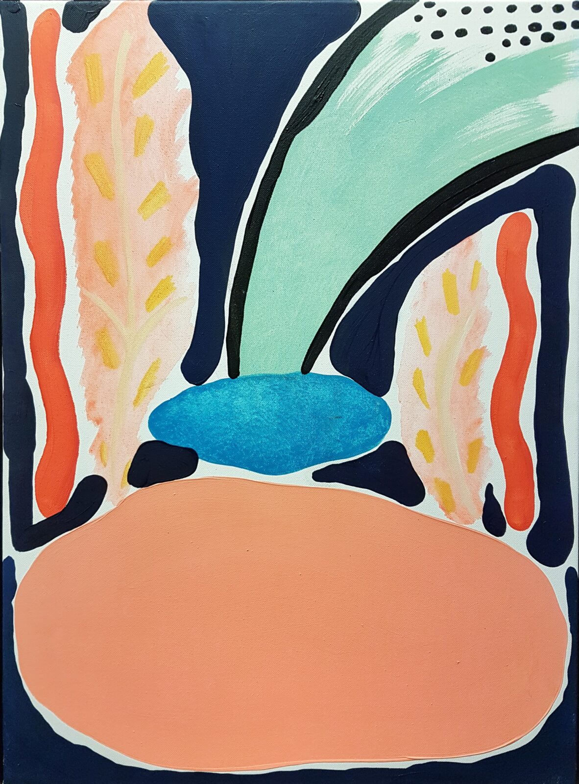 Akril, vászon. 70x50 cm. Jelezve jobbra lent: OA ‚16