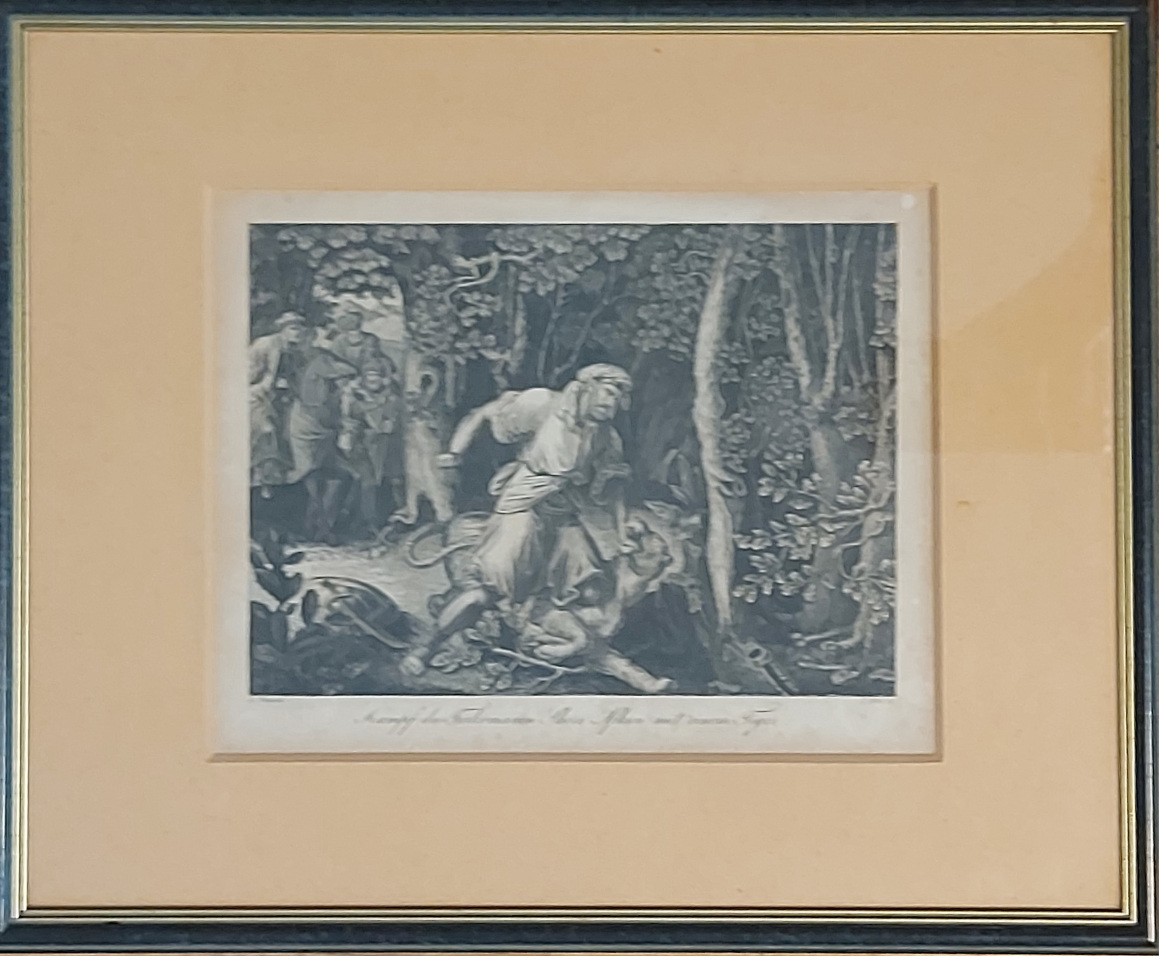 Harc a tigrissel. Kampf des Turkomenen Shere Afkun mit einem Tiger. Rézkarc.