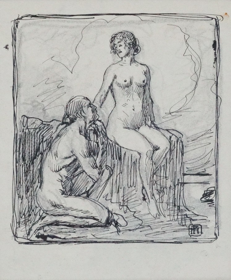 papír, tus, ceruza, jjl.bélyegzős aláírás, 16 x 14 cm
