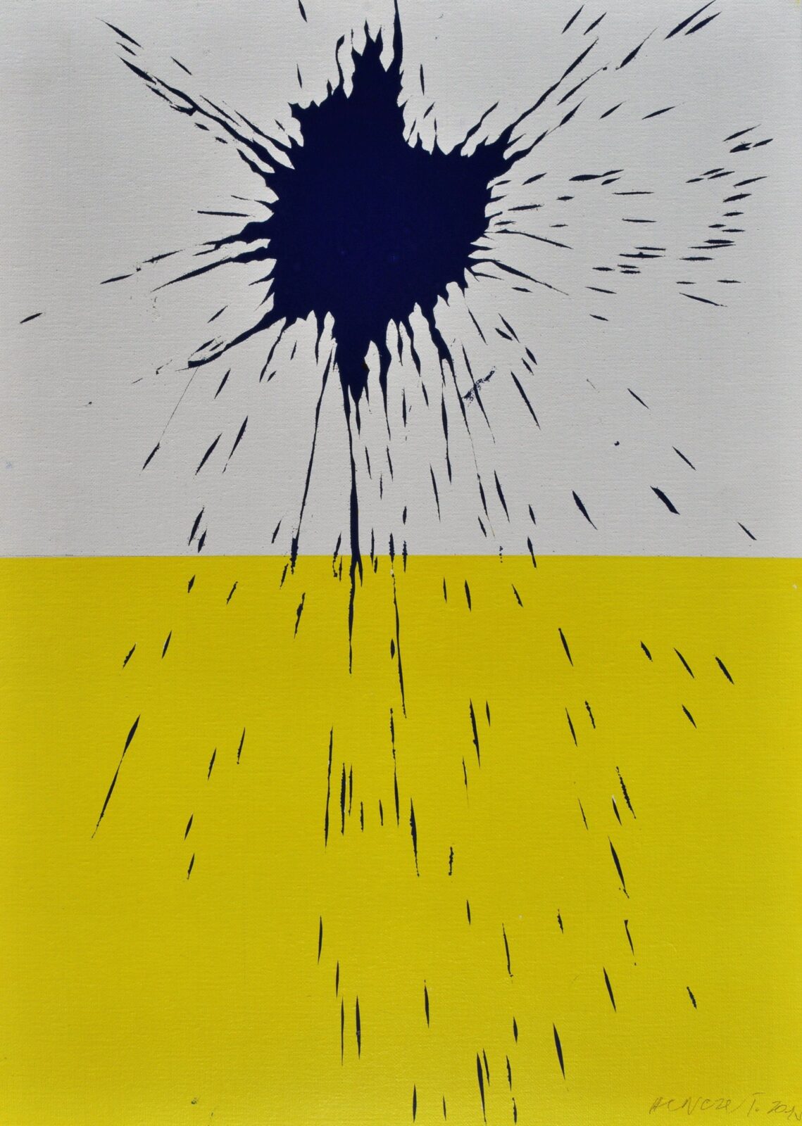 Csurgatott kátrány, papír. 59 x 46 cm. Jelezve balra lent: hagyatéki pecsét
