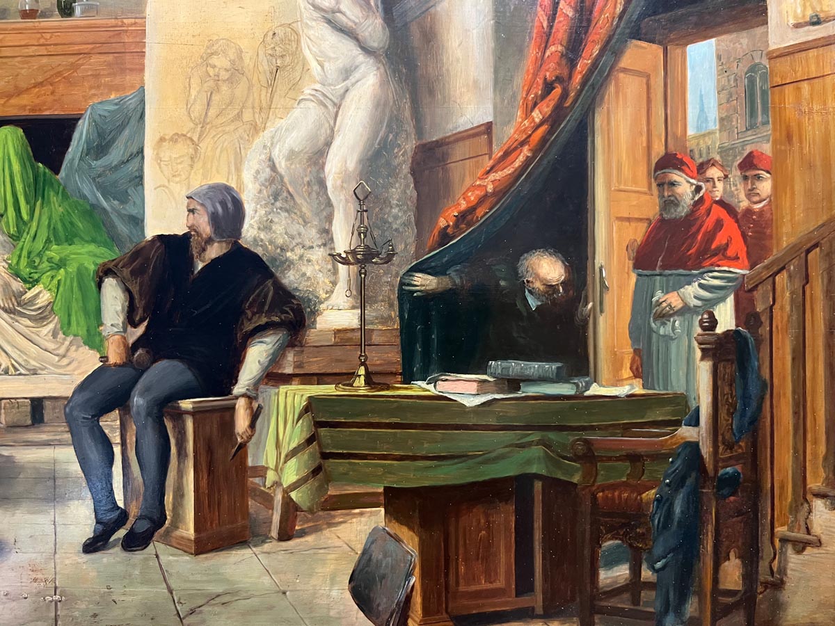 Henrik Weber (1818–1866) köre: „Michelangelo műtermében” – A megbízó érkezése…
