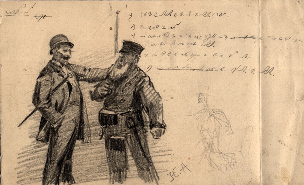 Heyer Arthur (1872-1931) Heyer Arthur (1872-1931): Sétapálcás polgár és veterán katona. Ceruza, papír. Jelzett.