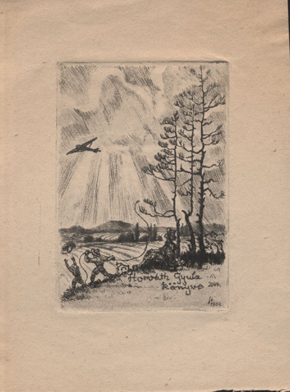 Horváth Gyula könyve. 1939. Horváth Gyula könyve. 1939. Grafikus St. (Sterbenz Károly.) Repülős témájú kisgrafika. Rézkarc. Jelzett.