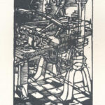 10204. tétel:A. Tóth Sándor (1904-1980): BUÉK Tóthék, 1940. Linómetszet, papír, jelzett a linón, 13×9 cm A hátoldalán postázva 1939-ben, bélyeggel. Jobb alsó sarkában törésnyommal, hátoldalán apró folttal.
