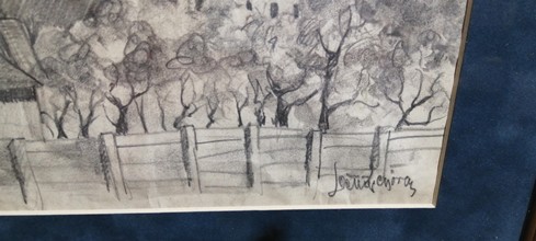 Mérete 22,5 cm* 27 cm, Technika: szén/papír, J.J.L.: olvashatatlan