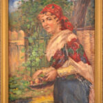 Ivanácz Zsolt József (1869-?): Lány népviseletben. Olaj, karton. Jelezve balra lent. Dekoratív, kissé sérült fakeretben. 50×40 cm<a href="https://www.darabanth.com/hu/gyorsarveres/428/kategoriak~Festmenyek-es-grafikak/Festmenyek-es-grafikak~500001/I