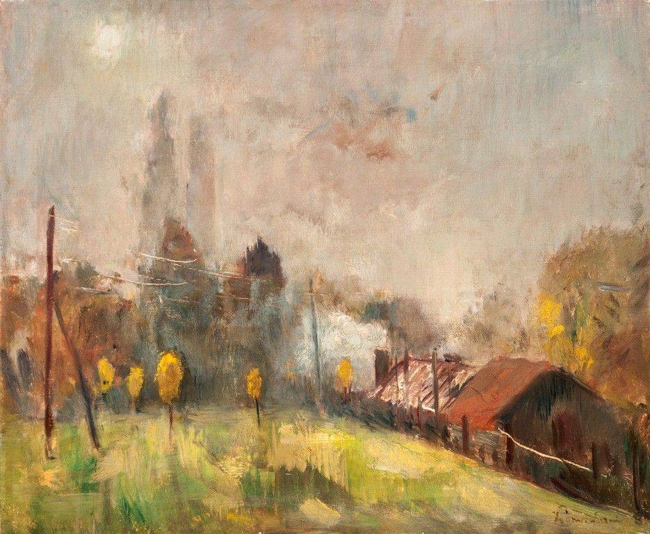 Iványi – Grünwald Béla (1867-1940): Faluvége ködben, 1930-as évek