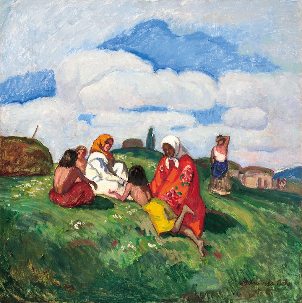 Olaj, papírlemez, 67×66 cm, Jelezve jobbra lent: Grünwald Béla. N.B.