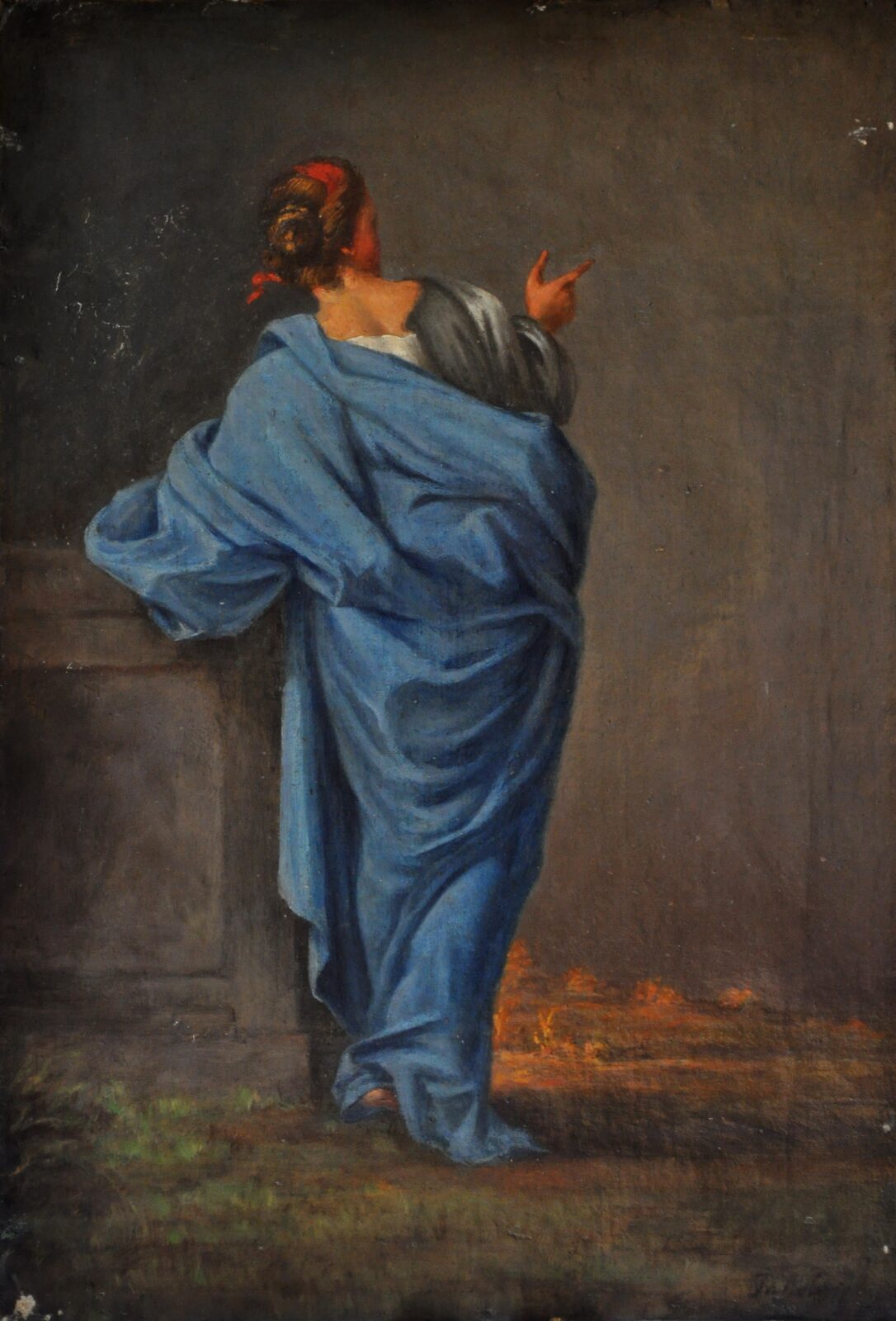 Kék ruhás nő, 37 x 26 cm, Olaj, karton, Jelezve jobbra lent: Kakoby