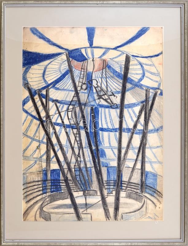 Jelzés nélkül: Cirkuszi sátor. Ceruza, papír, üvegezett fakeretben, 45×32 cm<a href="https://www.darabanth.com/hu/gyorsarveres/424/kategoriak~Festmenyek-es-grafikak/Festmenyek-es-grafikak-jelzessel-jelzes-nelkul~500002/Jelzes-nelkul-Cirkuszi-sator-C