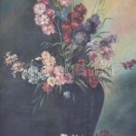 Jelzés nélkül, feltehetően XX. sz. első fele: Csendélet. Olaj, vászon. Kissé sérült. Dekoratív, sérült fakeretben. 84×50 cm.