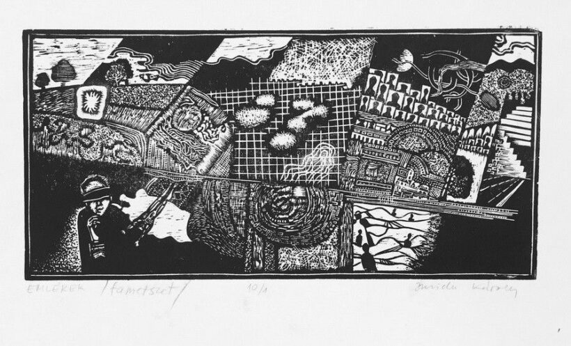 papír, litográfia, szita, jjl, keretben, 100 x 70