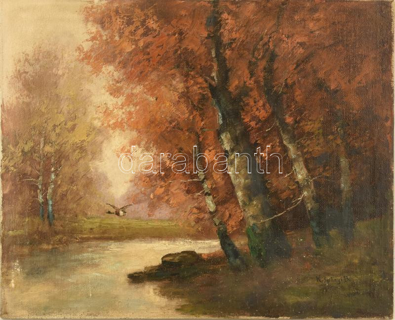 K Spányi B jelzéssel: Őszi táj. Olaj, vászon. Javított. 40×50 cm<a href="https://www.darabanth.com/hu/gyorsarveres/439/kategoriak~Festmenyek-es-grafikak/Festmenyek-es-grafikak-jelzessel-jelzes-nelkul~1000002/K-Spanyi-B-jelzessel-Oszi-taj-Olaj-vaszon