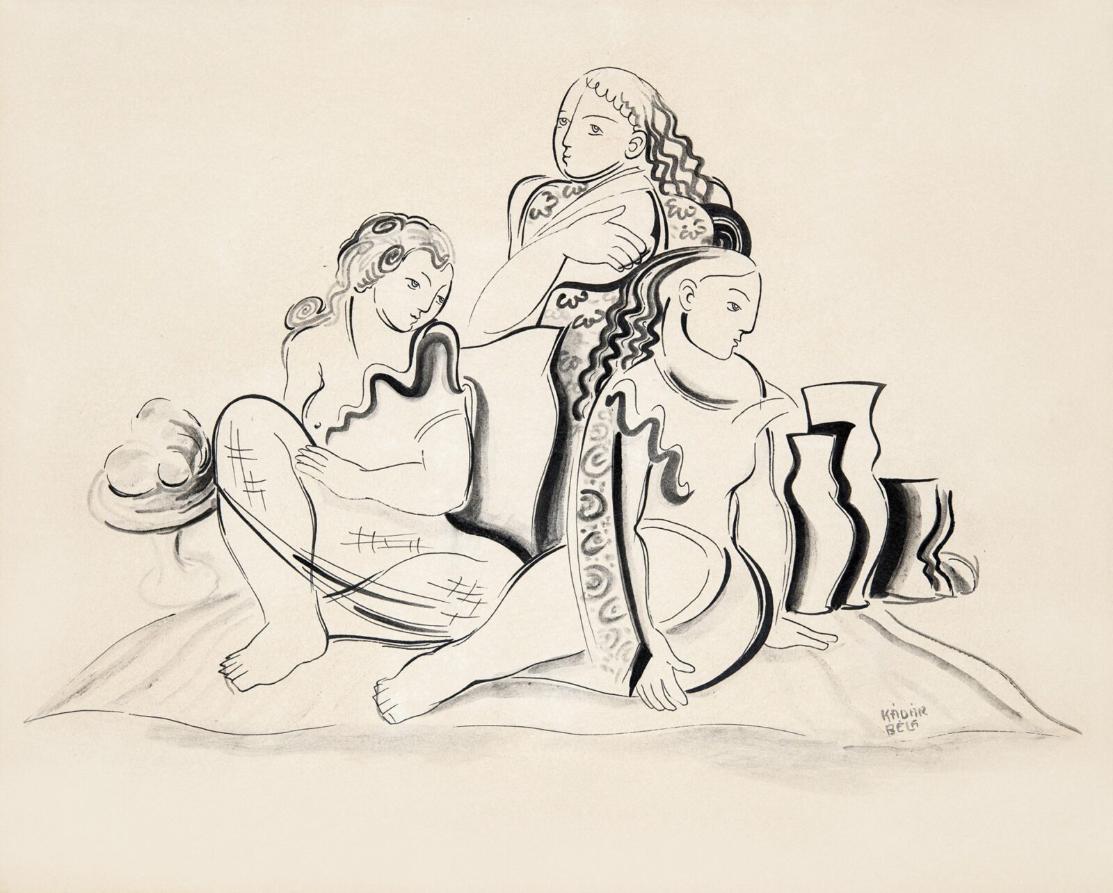 Lavírozott tus, papír, 25 x 31 cm, Jelezve jobbra lent: Kádár Béla