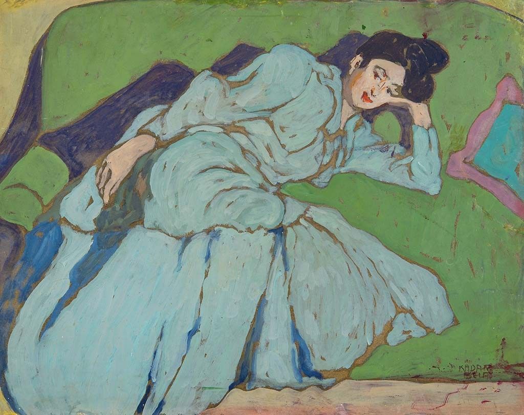 Kádár Béla (1877-1956) Fiatal hölgy pamlagon