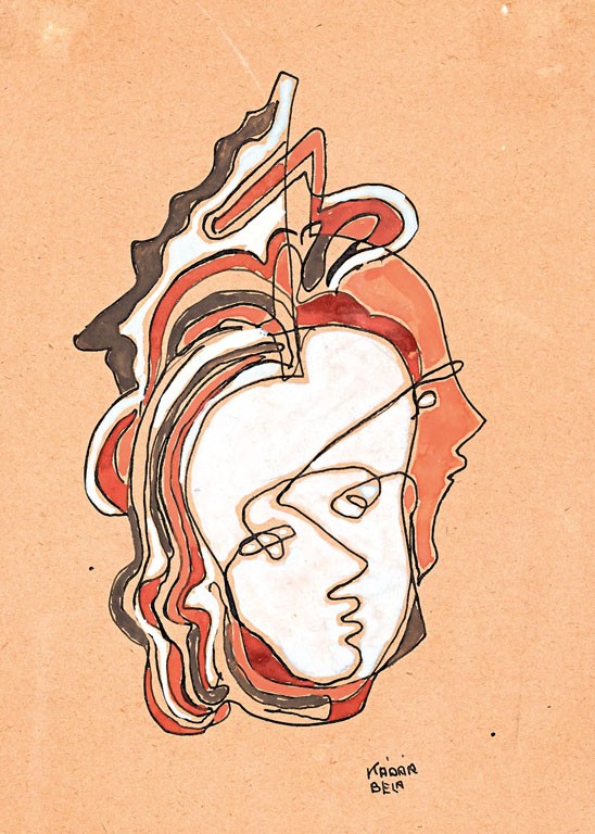 tus, gouache, papír, 200*145 mm, j.j.l.: Kádár Béla