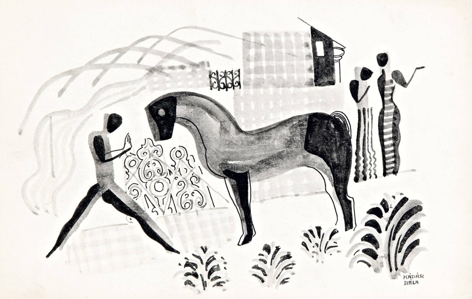 lavírozott tus, papír, Kádár Béla, 15*23,5 cm