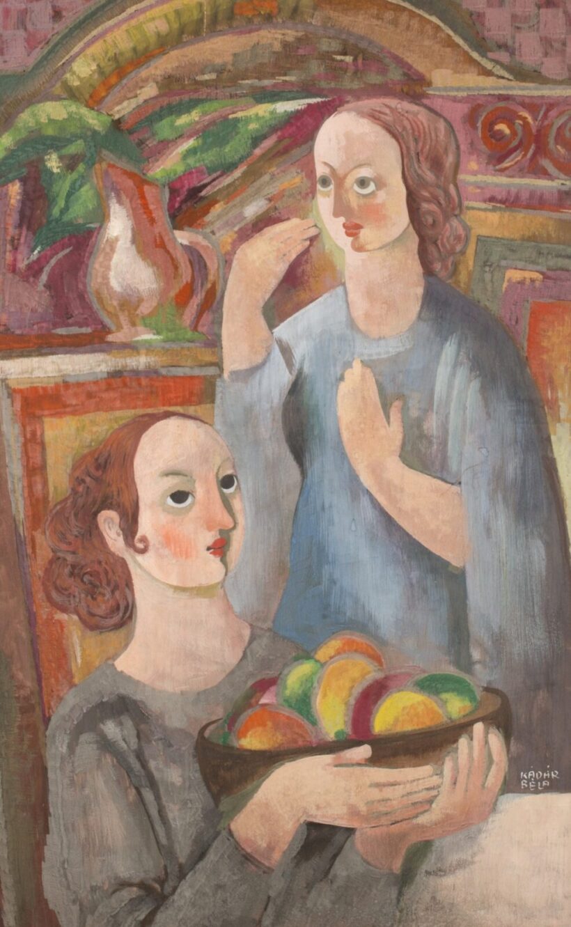 Kádár Béla: Nővérek, 1940 körül tempera, papír 95,5 x 61 cm Jelezve jobbra lent: Kádár Béla