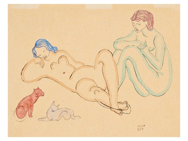 Kádár Béla Budaspest, 1877-Budapest, 1956 Aktok macskákkal