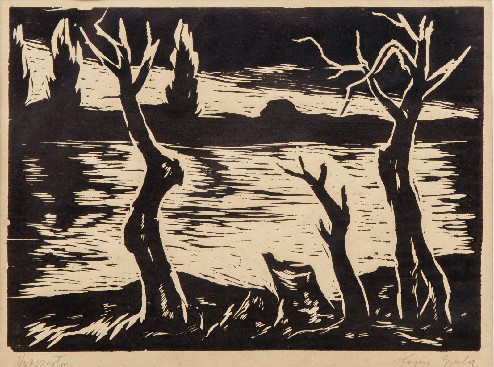 Linómetszet/papír, 33,5×47 cm, jjl.: Kajári Gyula