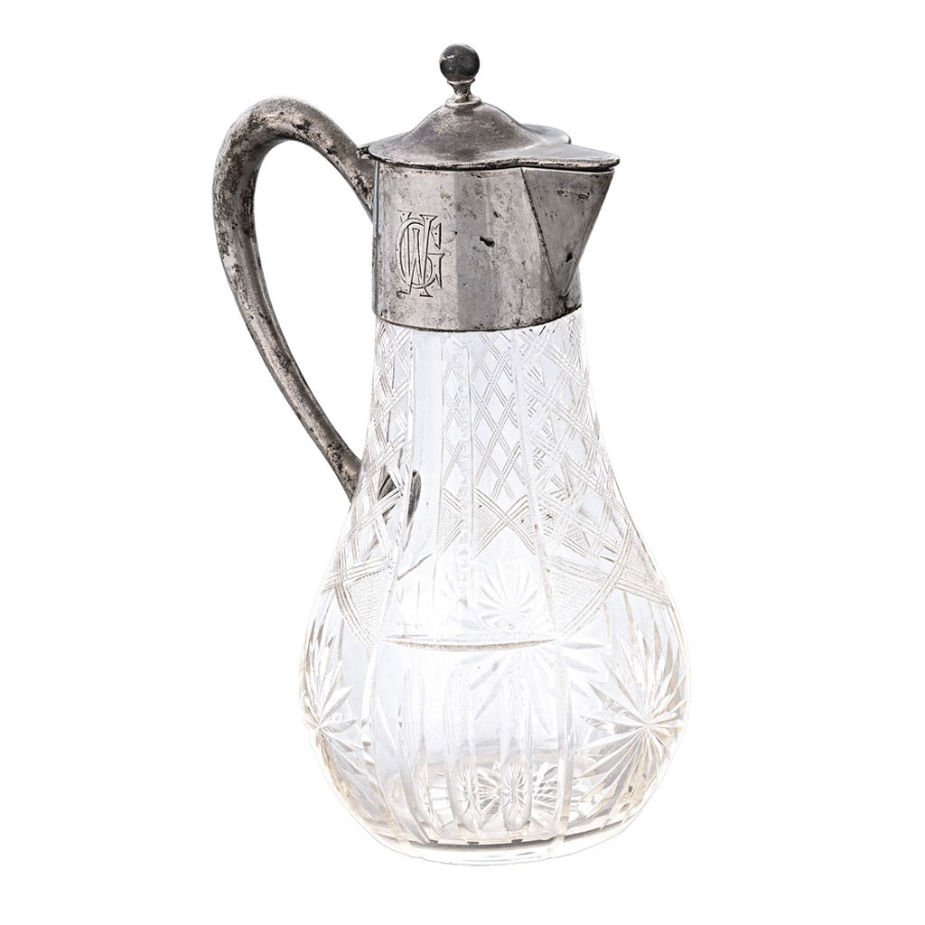 német, 1888 utáni hold korona fémjel, 800 ezrelékes ezüst szerelék 1902-1922 közötti linzi behozatali jellel ellátva, vésett WG tulajdonosi monogrammal, színtelen, csiszolt üveggel, m: 26 cm