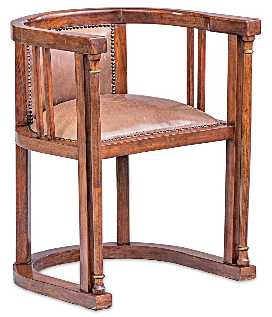 osztrák, 1910 körül, gőzölt, hajlított bükkfa, réz rátétekkel, bőr ülőrésszel, 76*61*52 cm
