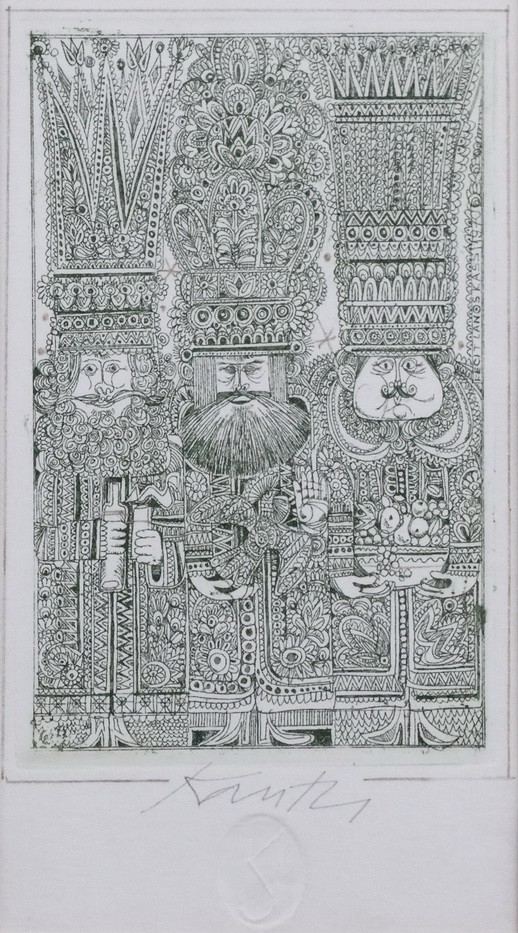 papír, rézkarc, jkl, keretben, 14,5 x 9,5 cm