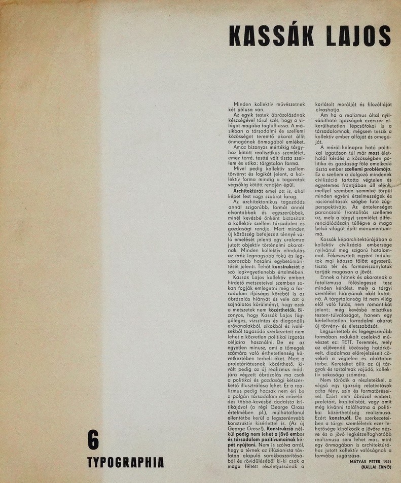 Kassák Lajos (1887 – 1967): 6 typographia, teljes mappa (az eredeti linó 1923 k.)