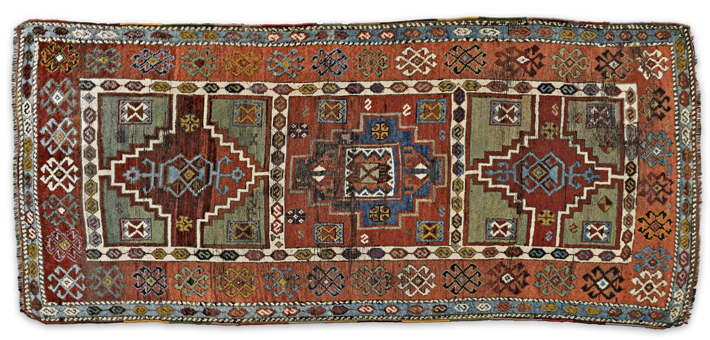 20. sz. eleje, gördesz csomózás, egyenletesen kopott, régi javításokkal, 253*108 cm