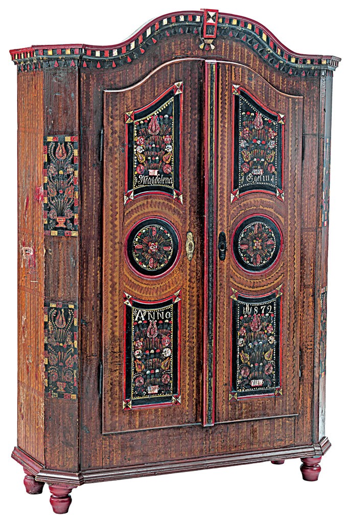 Harta, 1872, faragott, festett fenyőfa, felirattal, akasztós és polcos, 184*130*49 cm