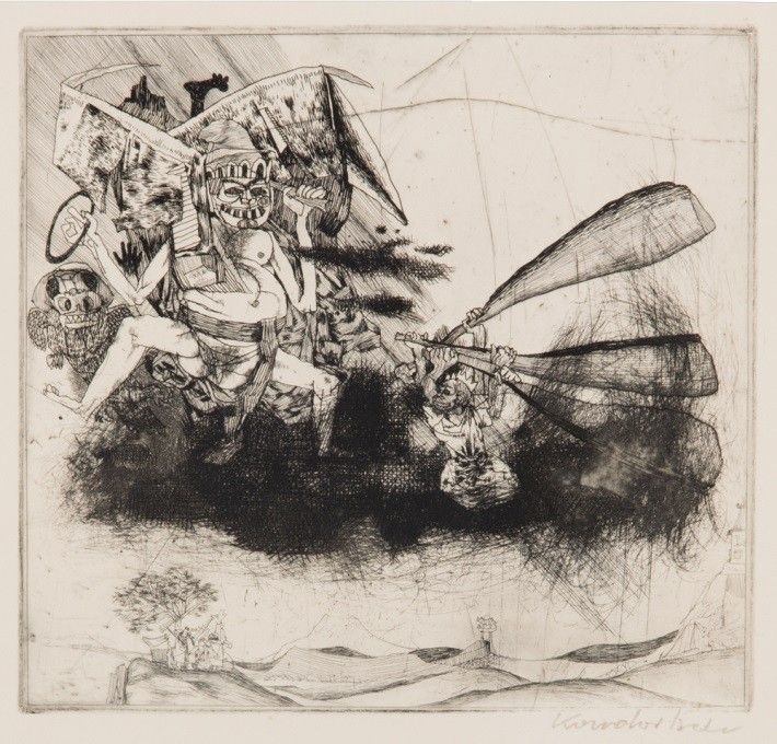 Kikiáltási ár: 60 000 FtKokas Ignác (Vál, 1926 – Vál, 2009) Ady fantázia, 1977 Szeringráfia, papír 610 × 470 mm Jelezve balra lent: Ady fantázia CV/43 Jelezve jobbra lent: Kokas Ignác 1977