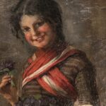 Konek Ida: Ibolyaárus kislány, 1883 olaj, vászon 51 x 27 cm Jelezve jobbra lent: Konek Ida 1883