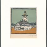 Kós Károly (1883-1977): Városháza. Linómetszet, papír, jelzett a dúcon, kartonra kasírozva, körbevágott, 11×11 cm