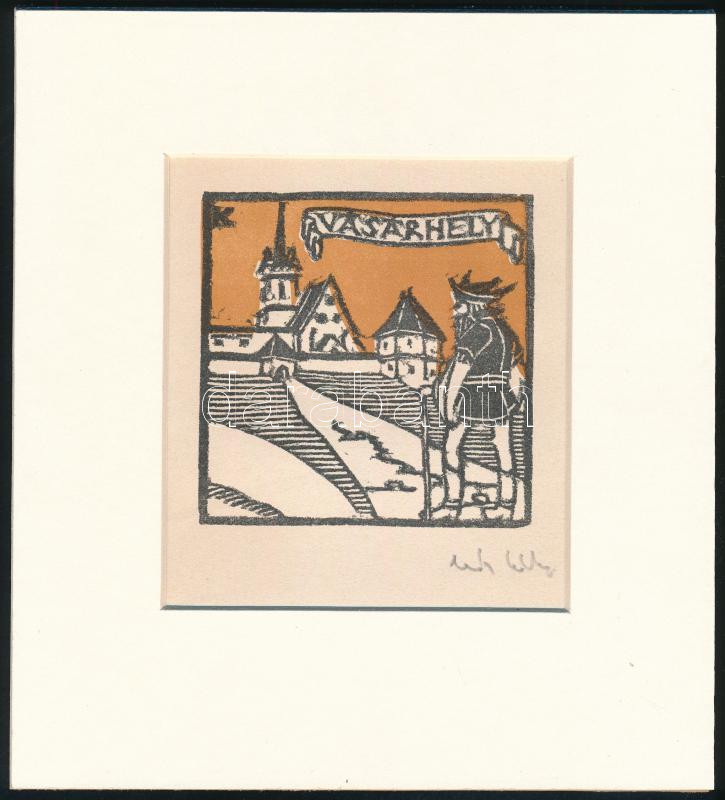Kós Károly (1883-1977): Vásárhely. Linómetszet, papír, utólagos jelzéssel, hajtásnyommal, paszpartuban, 9×9 cm<a href="https://www.darabanth.com/hu/gyorsarveres/430/kategoriak~Festmenyek-es-grafikak/Festmenyek-es-grafikak-jelzessel-jelzes-nelkul~500