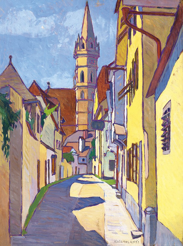Kosztolányi Kann Gyula: Kisvárosi utca templomtoronnyal, 1912 körül