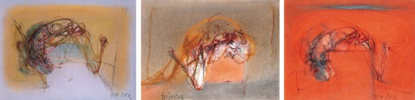 Pasztell, ceruza, papír, 27 x 33 cm, 26 x 35 cm, 22 x 34 cm, Jelezve jobbra lent: ’95-98 Pet’R (mindegyiken)